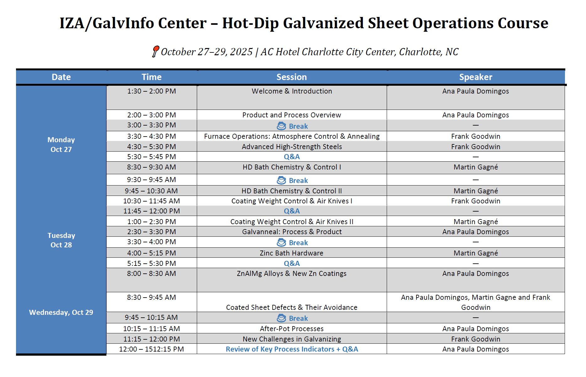 IZA/GalvInfo Center – Hot-Dip Galvanized Sheet Operations Course Program